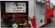 JDF5040GXFSG10/Q6型水罐消防車,采用慶鈴QL1040BUFWY底盤改裝而成。整車由消防員乘員室和車身兩大部分組成,乘員室為原裝雙排,可乘坐2+3人,該車為內倉罐結構,車身前部為水罐+器材箱,后部為泵房。主框架結構采用鋁合金方管焊接,載液罐體為優質碳鋼,與底盤采用螺栓連接,載水650kg,裝備了上海雄真消防設備有限公司生產CB10/30-XZ型消防泵,額定流量30L/S,車頂安裝成都威斯特消防機械有限公司生產的PS30W型車用消防炮。該車最大的特點是機動靈活、操控性好、維修簡便。可廣泛應用于公安消防隊、廠礦企業及社區、碼頭等場所,撲救一般物質火災。